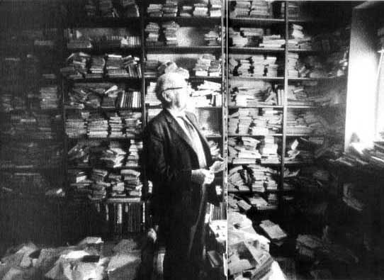 "Esta foto se la hice al poeta León de Greiff en su biblioteca. De Greiff era un personaje muy simpático y muy tímido, pero conmigo era despreocupado. Solíamos sentarnos en El Automático. Yo me tomaba un café, él un cuarto de aguar diente. De Greiff detestaba las fotos, así que le pedí que me buscara un libro y mientras lo buscaba pude tomar esta foto que revela el mundo en el que vivía el poeta", dice.